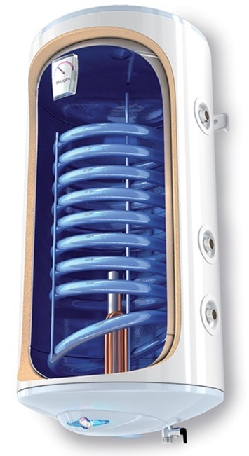 ✔ електричні водонагрівачі вертикальної серії з зміями для з'єднання із зовнішніми джерелами тепла, наприклад Сонячні системи, газові котли або тверді паливо. Built -in heat exchanger with high efficiency with a connected turbolator, a patented solution for quick heating of water through thermal energy from alternative sources