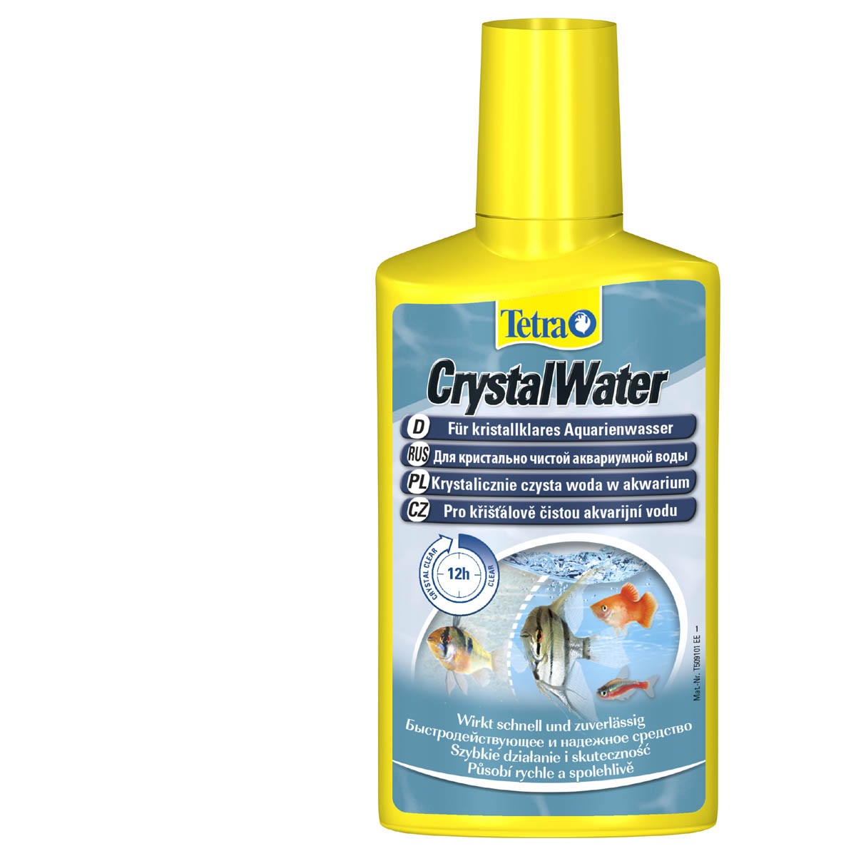 - Активні інгредієнти Tetra CrystalWater поєднують дрібні частинки у більші, які потім видаляються фільтром