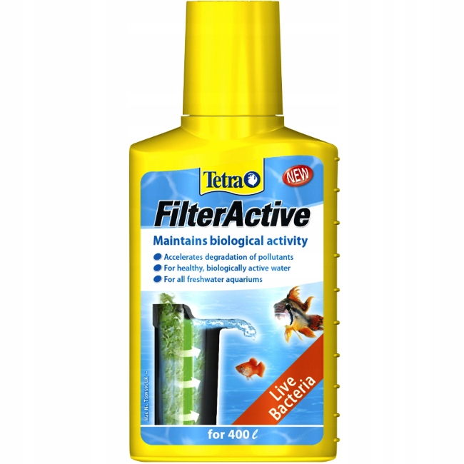 Бактеріальна флора необхідна для належного функціонування акваріума. Підміна води, знемулювання дна або заміна картриджів фільтра викликає часткове змивання бактерійi. Регулярно вводячи Tetra FilterActive, ви можете бути впевнені, що відповідна кількість бактерій підтримуватиме баланс у вашому акваріумі.