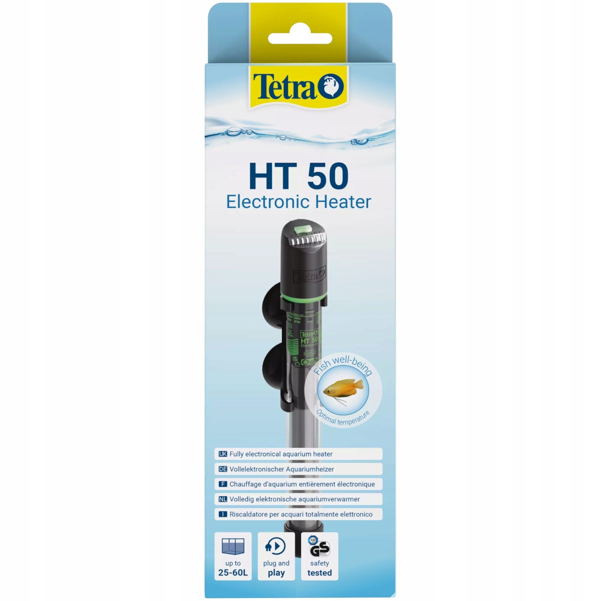 tetra ht - високоякісний акваріумний нагрівач з електронним термостатом. Це дає можливість встановити потрібну температуру в діапазоні від 20 ° C до 32 ° C . Ми змінюємо температуру, торкаючись панелі, розташованої у верхній частині. Пристрій має точне регулювання з точністю ± 0,5 ° С
