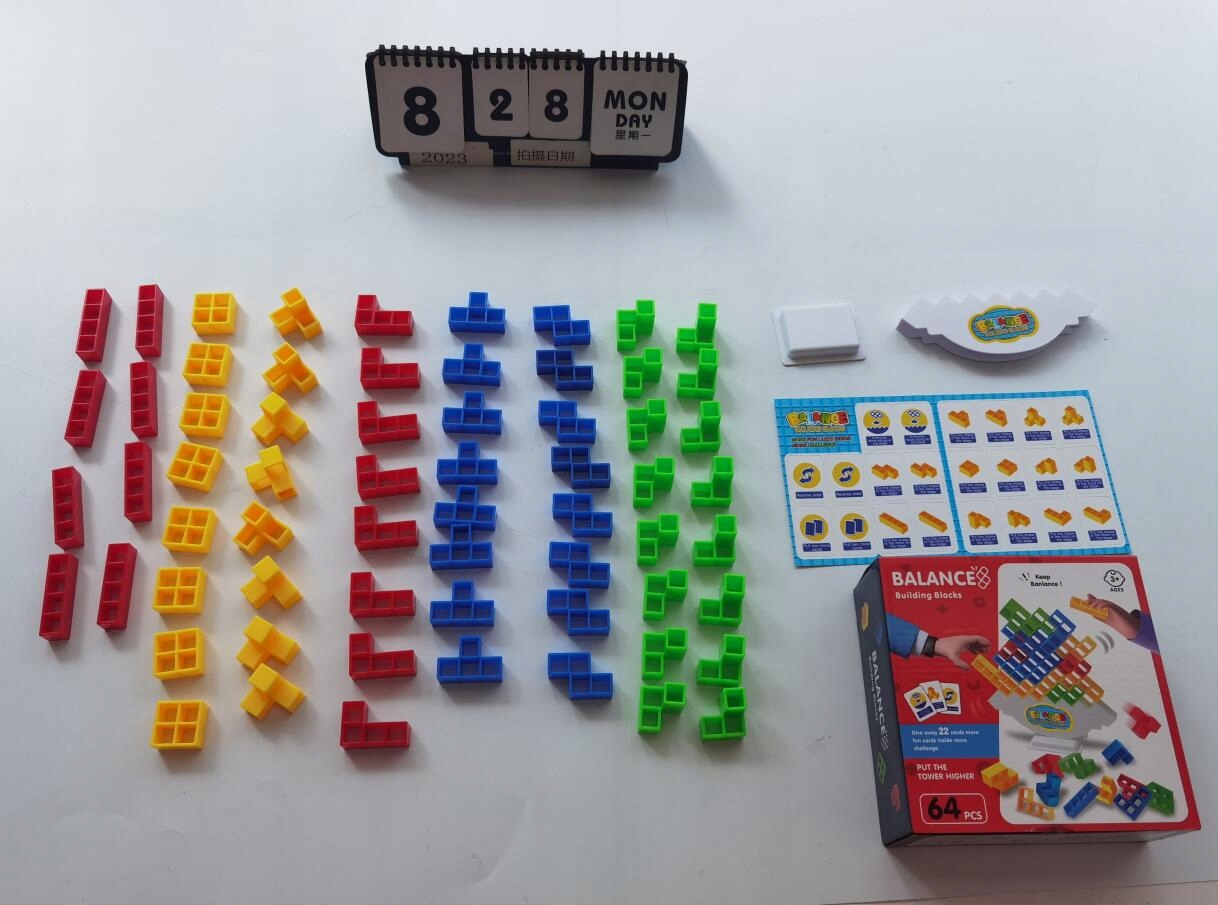 - Гра Tetra Tower включає: 1 базу та 64 блоки (8 груп із 8 різними формами та кольорами) блоків) у різнокольорових і великих кількостях, що задовольняють потреби дітей у вільний час.