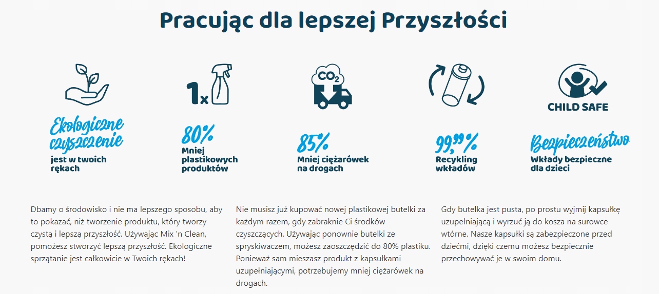 Серія Mix'n Clean продукти зосереджені на екології, зниженні вуглецевого сліду та пластикових відходів.