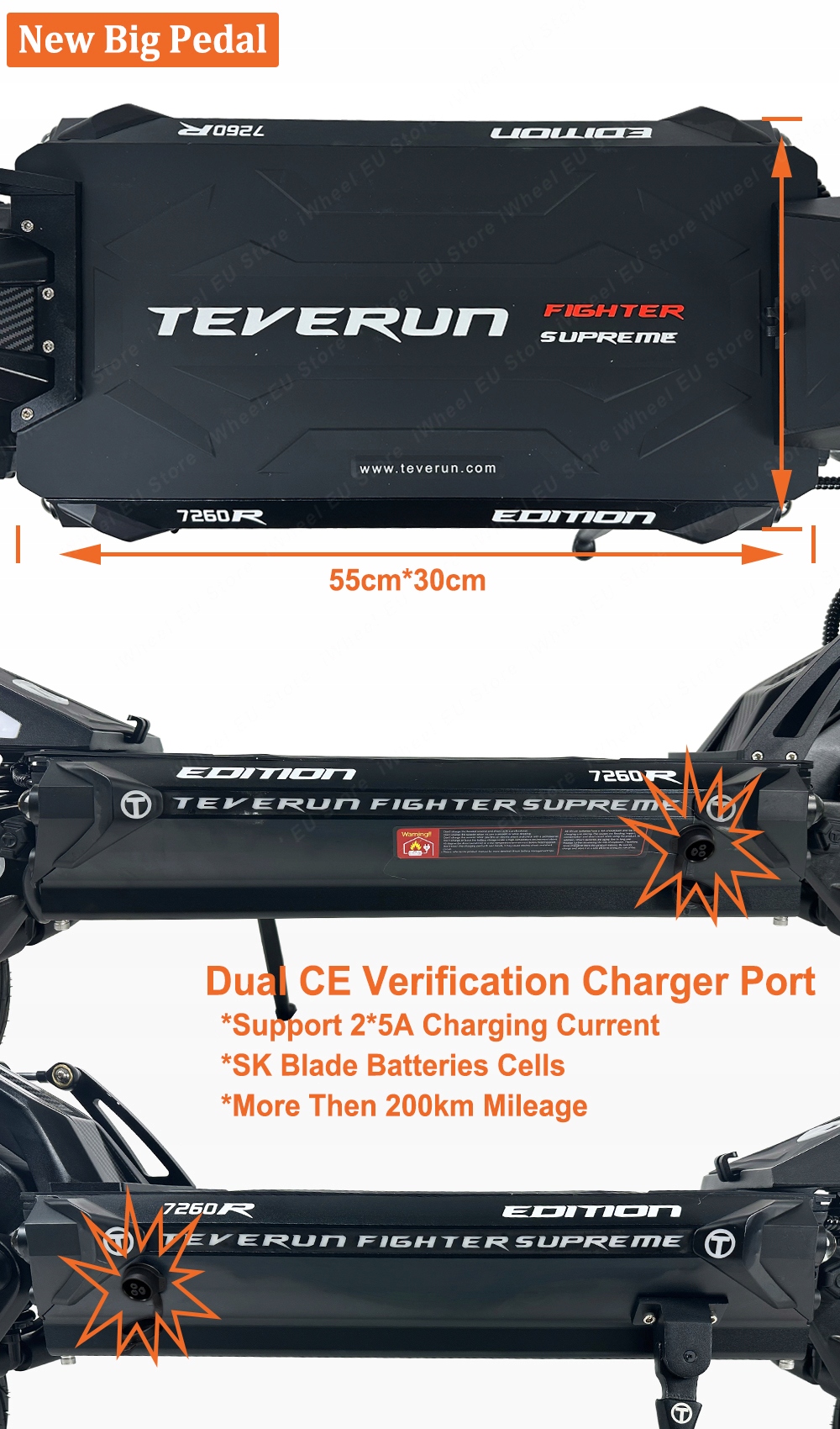 Ця модель відрізняється вдосконаленою системою 72 В і вражаючою ємністю 60 AH, що дозволяє проїхати до 200 км за одним зарядом.