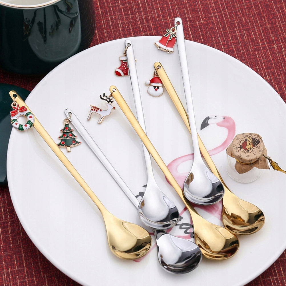 6 шт. Різдвяна ложка кави з нержавіючої сталі ложкою для ложки для кави, чаю, супу, цукру, десерту