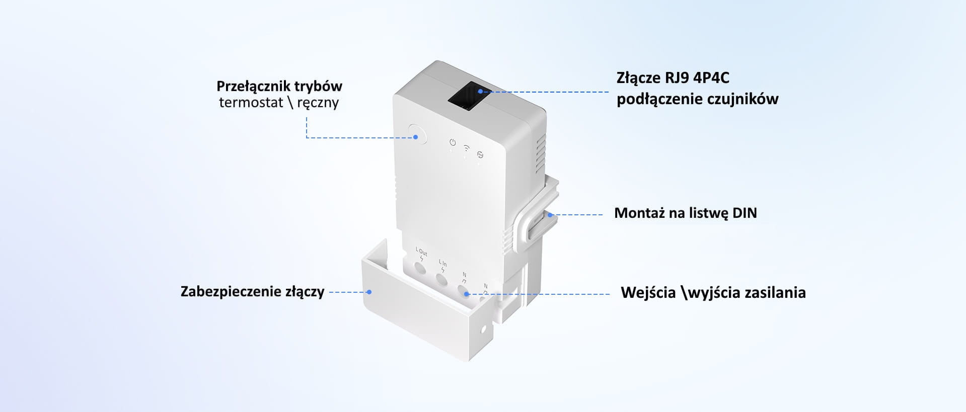 - Вбудоване реле з максимальною потужністю навантаження 16 А