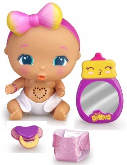 Нові малюки Bellies мають своїх унікальних персонажів і відповідні аксесуари: надкушений льодяник для сварливої Ноні - і пляшечка з дзеркалом для милої Кукі – Cute. У нас нові блискучі підгузки!