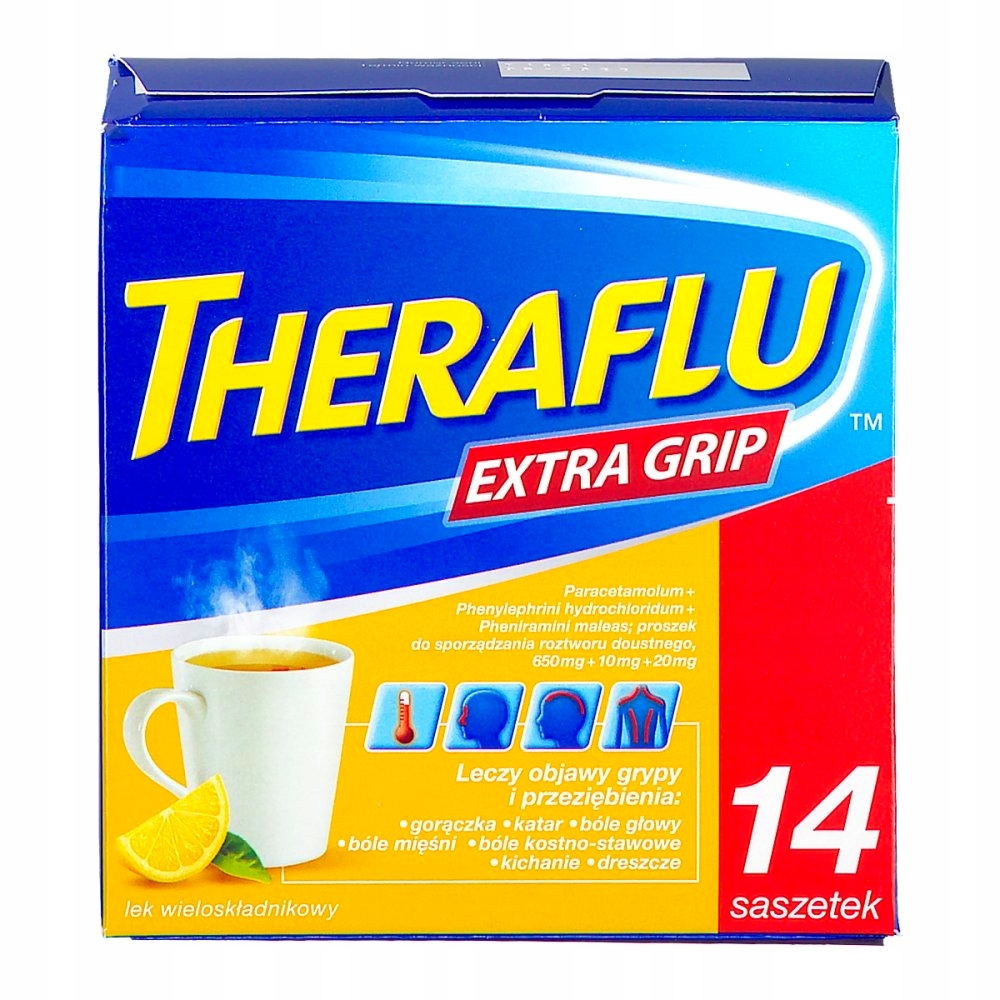 Theraflu Extra Grip 650 мг + 10 мг + 20 мг, порошок для приготування перорального розчину, 14 пакетів