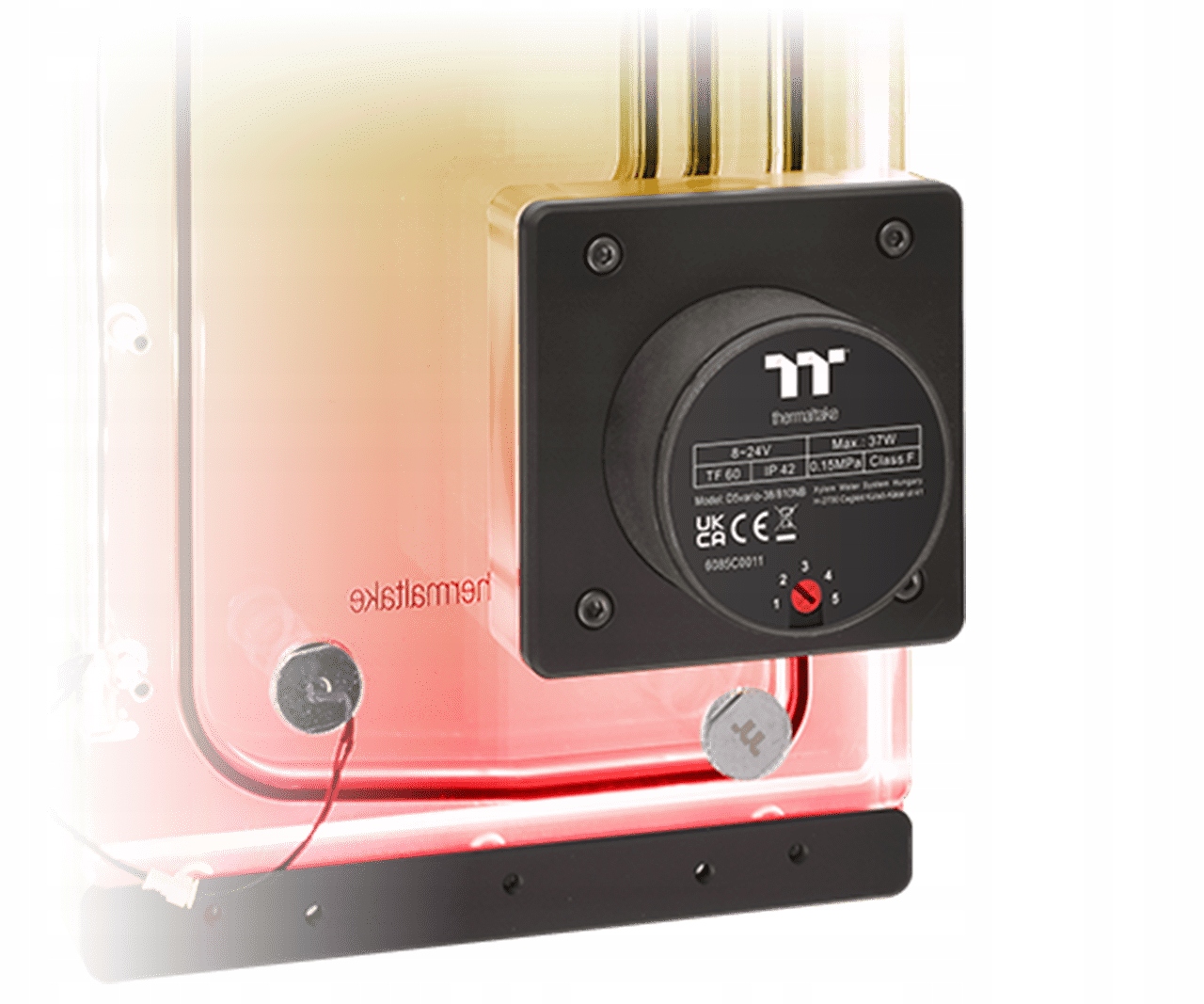 Плата має 24 адресних світлодіода з підсвічуванням 16,8 мільйонів кольорів RGB, що дозволяє розсіювати світло в рідині та створювати вражаючі світлові ефекти RGB. Ефектами підсвічування можна керувати за допомогою TT RGB PLUS 2.0, Neonmaker і програмного забезпечення материнської плати 5 В, наприклад програмного забезпечення ASUS, GIGABYTE, MSI та ASROCK RGB.