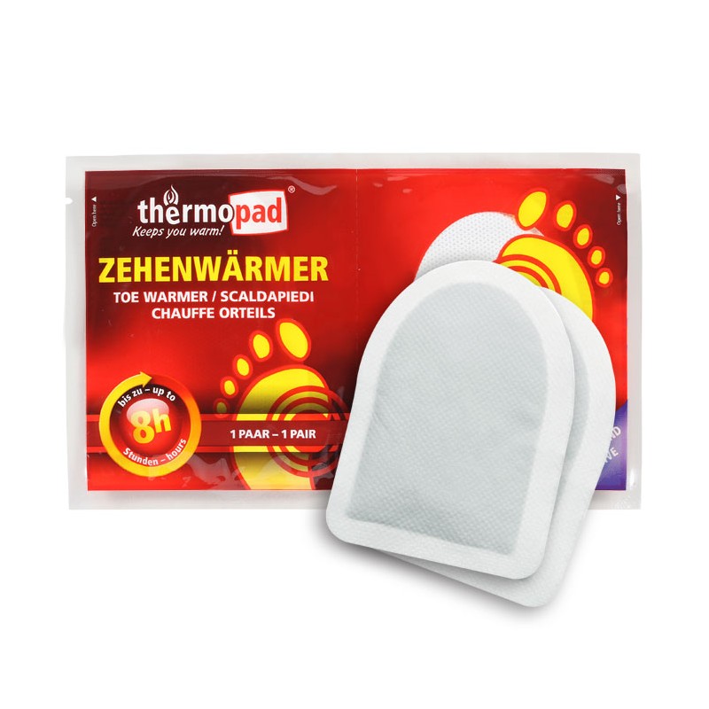 Грілка для ніг Thermopad підійде всім - їх може використовувати кожен, хто не любить мерзнути ногам або хоче уникнути застуди чи обмороження. Вони приклеюються на зовнішню сторону шкарпеток. Клейовий шар забезпечує стабільне положення у взутті. Їх можна використовувати у всіх типах взуття, включаючи лижні черевики. Упаковка містить два самоклеючі пакети, по одному на кожну ногу. Нагрівачі активуються струшуванням: після виймання з упаковки при контакті з повітрям вони нагріваються до температури 37oC (середнє значення) протягом 20 хвилин. Максимальна температура 45oC. Взуття зберігає тепло до 8 годин.
