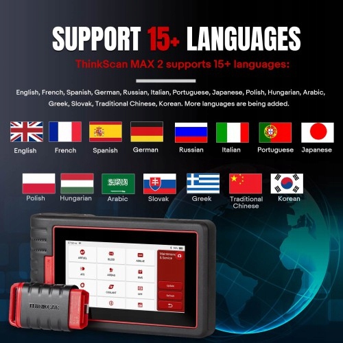 ThinkCar ThinkScan Max 2 ThinkScan Max2 -це бездротовий сканер на рівні ОЕ всіх доступних автомобілів, таких як двигун, коробка передач, ABS, SAS, TPMS, BMS, IMMO, IMMO, систем тіла тощо. Основні функції всіх систем -це коди читання/видалення, реальний потік даних та читання інформації про модуль ECU. Забезпечує всебічну та швидку діагностику за допомогою меню "сканування". Основна діагностика функцій усієї системи підтримує життя безкоштовних оновлень. Він оснащений ключем апаратного забезпечення V4.0 Bluetooth, який підтримує діагностичні відстані до 33 футів. Повна діагностика системи на рівні ОЕ: Коди читання несправностей для всіх систем, таких як ECM, TCM, ABS, SRS, BCM, IMM, BMS, TPMS, SAS, Система палива, Система освітлення, склоочисники, безкоштовно LifeTime