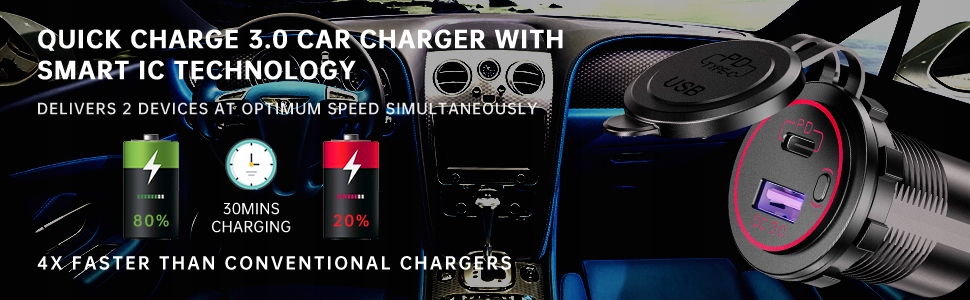 PD Type C та QC3.0 USB Sanger з перемикачем та світлодіодним індикатором. GPS, цифрові камери, КПК та інші USB -аксесуари.