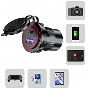 Thlevel Auto USB KFZ QC3.0 PD Type C USB зарядний пристрій з 12 -ти/ 24 В Botor Motorrad Suv Bus Caravan (червоний)