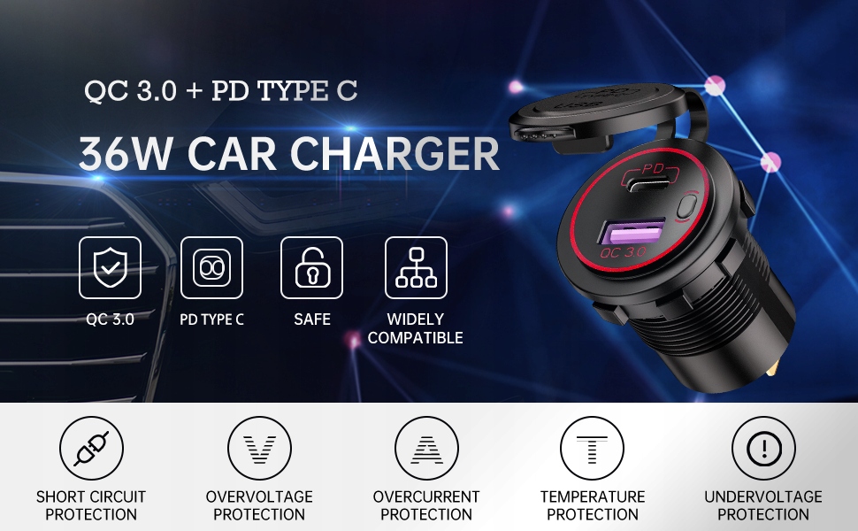 Порти виведення технічних даних: USB + тип живлення живлення: постійний струм 12v-24ve вхідна напруга: 12v-24vusb вихідна напруга: ≤24veingentst! 6,5 В / 3а, 6,5 V-9 V / 2A, 9V-12V / 1,5ар Матеріали: ABS: ABS не для мобільних телефонів, які не підтримують швидку зарядку, виконайте нормальну швидкість. За допомогою мобільних телефонів, які підтримують швидку зарядку, ви повинні мати оригінальний кабель зарядки або використовувати кабель швидкої зарядки для отримання швидких пакетів