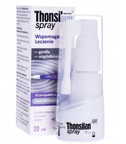 Тонсілан спрей – це медичний засіб, що містить комплекс NeoSilve+, який покриває слизову оболонку горла захисною плівкою, захищаючи її від шкідливих патогенів і забезпечуючи належний рівень зволоження.
