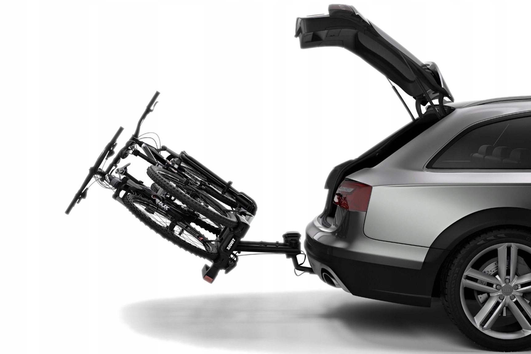 ✅ Можливість відключення кріплення зброї та використання ручок Thule Acutight, які клацніть сигнал, що оптимальна сила фіксації була досягнута , дозволяє безпечно та швидко закріпити велосипеди на платформі.