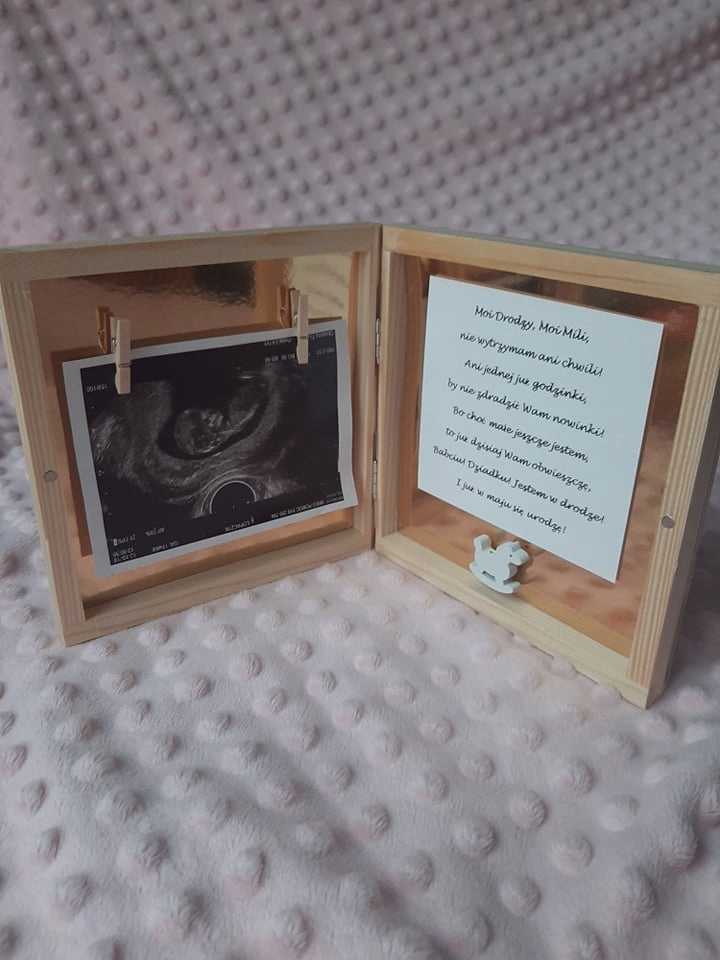 Попередження своїх батьків оригінальним чином, що вони стануть бабусями та дідусями. У них є дерев’яна коробка з фотографією ультразвуку дитини всередині. Такий переклад чудової інформації, безумовно, перенесе їх до сліз. Коробка буде сувенір протягом багатьох років.
