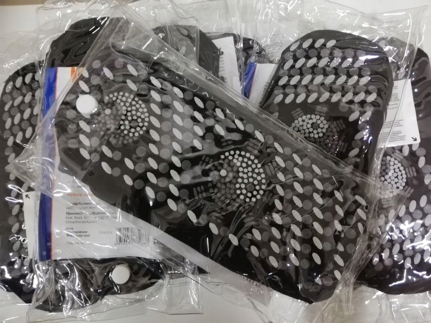 На фото зображена ліва сторона шкарпеток. На ногу одягаємо турмалінові шпильки, носок ззовні весь чорний з логотипом компанії.
