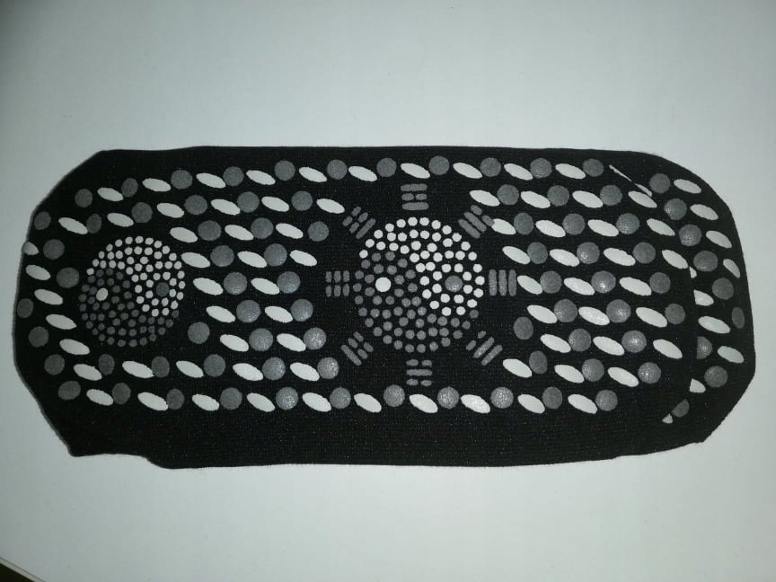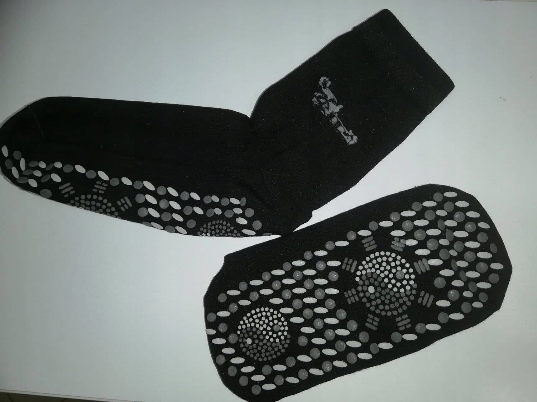 На фото зображена ліва сторона шкарпеток. На ногу одягаємо турмалінові шпильки, носок ззовні весь чорний з логотипом компанії.