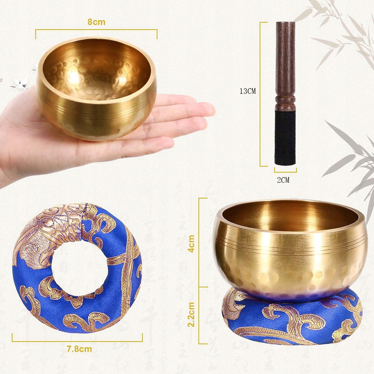 Тибетська чаша Чаша зі звучанням ручного кування, 8 см, великий комплект