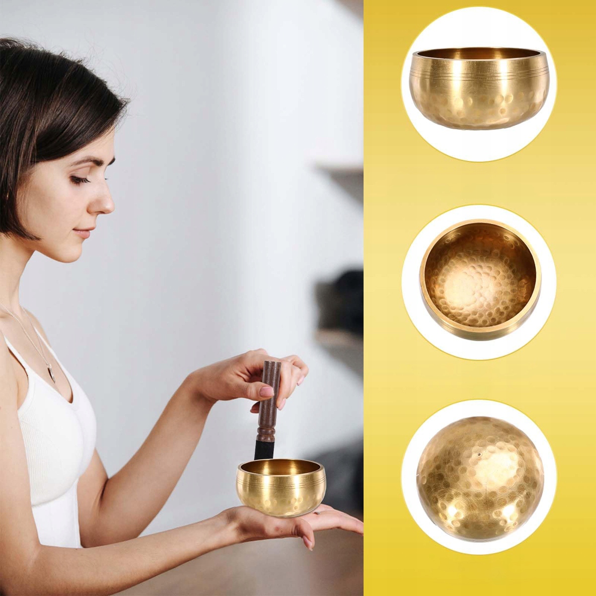 - Коли по краях постукати або потерти паличкою, що входить у комплект, видає унікальний звук, який допомагає розслабитися, зняти стрес і сприяє внутрішньому миру та фокус.