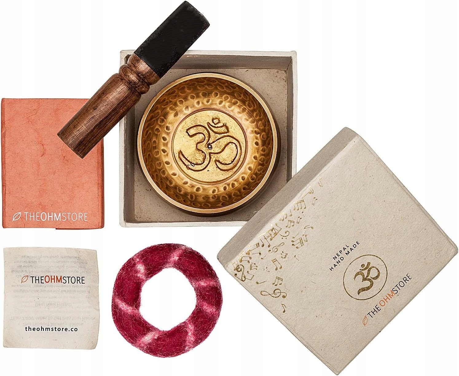 Набір: Непальська чаша з поважним магазином магазину OHM та Loka Dziennik - Misa для медитації, полегшення стресу, зцілення духовних чакр. доступний на ринку. Наш набір має музичне кільце, виготовлене з вовни овець, а не штучної синтетики. Підтримуючи природні матеріали, звук чистий і глибокий.