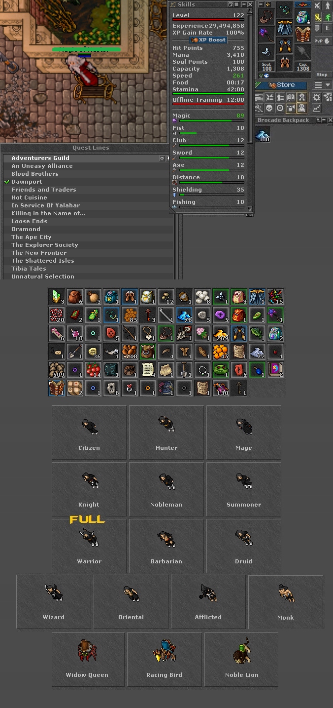 Tibia 122 LVL ED Druid Antica + 100cc Gold + Full EQ
