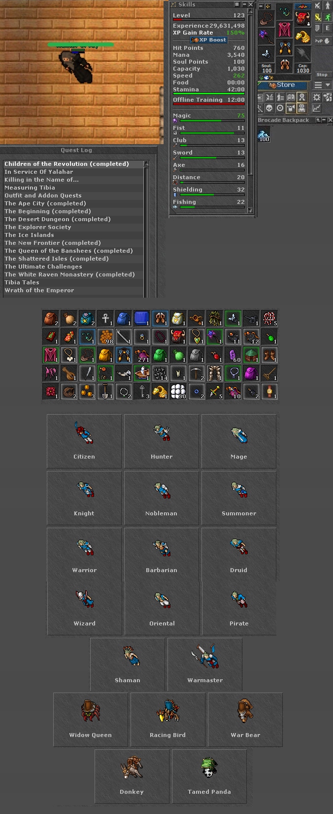 TIBIA 123 LVL ED DRUID NEFERA + 100CC GOLD + Full EQ + Offits Mount
