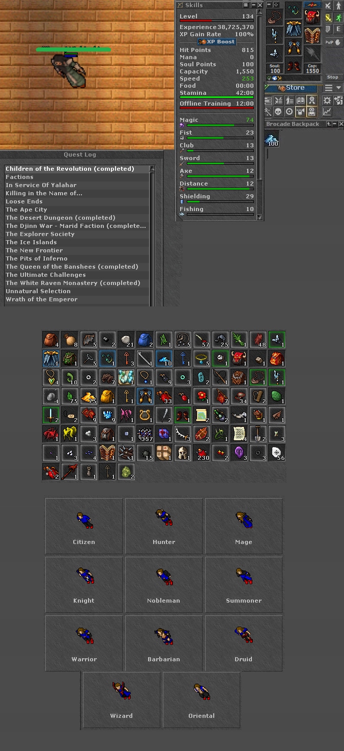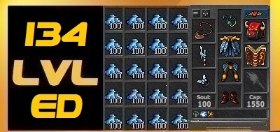 TIBIA 134LVL ED DRUID PELORIA + 100cc GOLD + FULL EQ