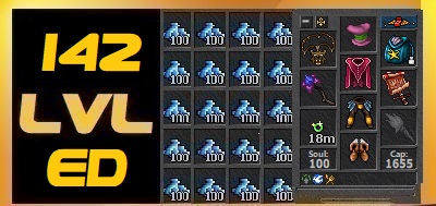 Tibia 142 LVL ED Druid Zuna + 100cc Gold + Full EQ + Mount and Offity