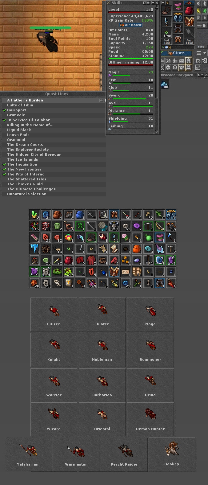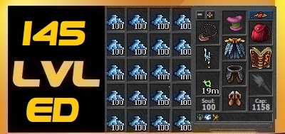 Tibia 145 LVL ED Druid Malivora + 100cc Gold + Full EQ + Mount & Outfit