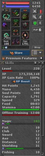 TIBIA 220 ED + 103 Mlvl + SECURA + EQ + FREE RK