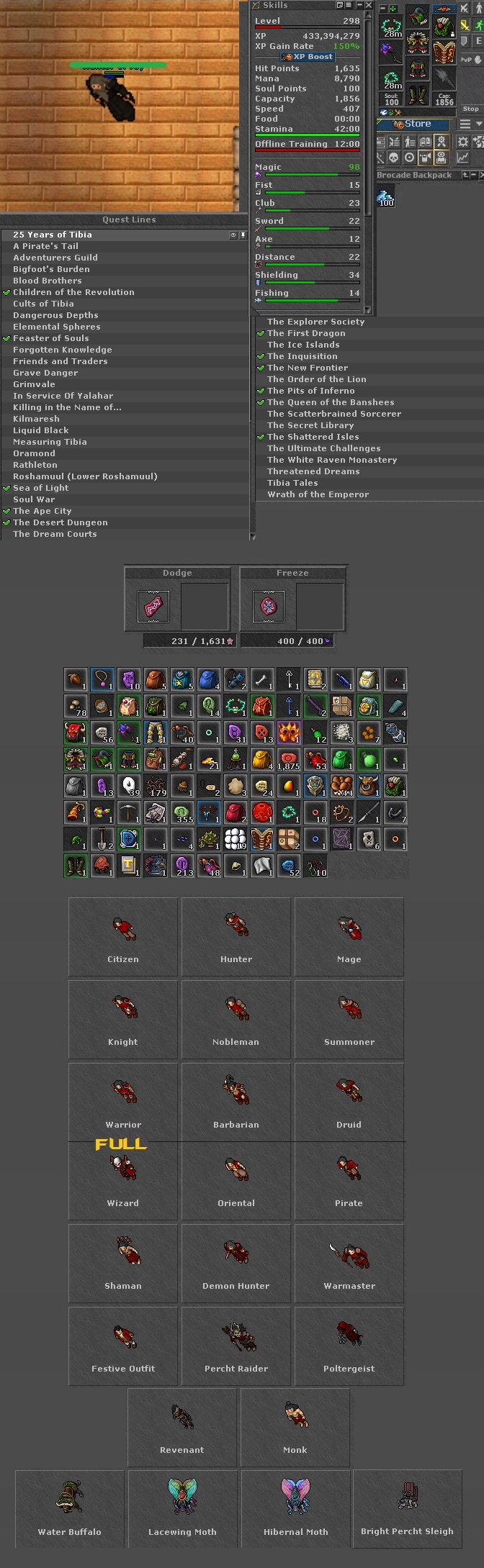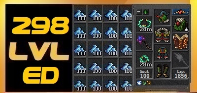 TIBIA 298 LVL ED DUPIID KALIBRA + 100CC GOLD + FULL EQ + OFFITS MOUNT