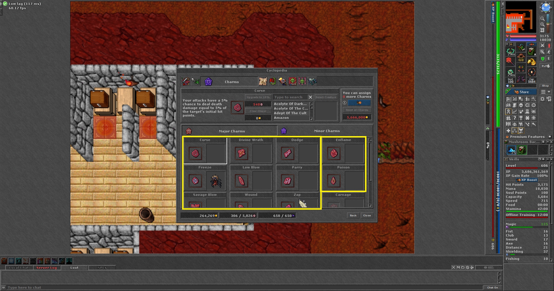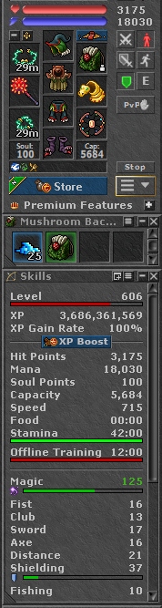 TIBIA 606 ED + 125 MLVL + 11 CHARMS + 22 OUT + 19 MOUNT+ SECURA +EQ+FREE RK