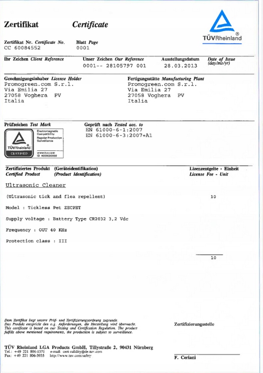 TickLess не використовує токсичних/хімічних речовин іповністю безпечний для домашніх тварин і людей (включно з вагітними жінками, маленькими дітьми, людьми з кардіостимуляторами тощо).