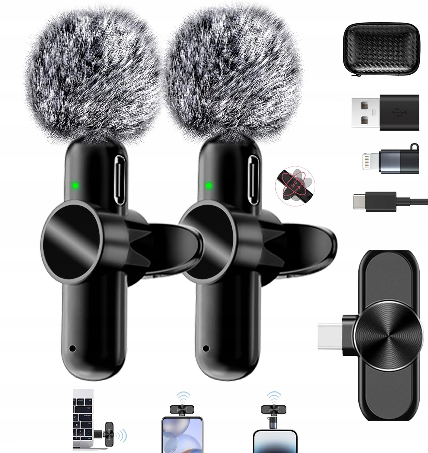 ♦️♦️ШИРОКА СУМІСНІСТЬ: Наш бездротовий петличний мікрофон постачається з приймачем Type-C, адаптером Type-C на Lightning і адаптером Type-C на USB для різних пристроїв (один для iPhone, один для телефонів з Android Type-C і один для ноутбуків). Петличний мікрофон працює без проводів з iPhone 6 і новіше, iPad 2/3/4, iPad Air, ноутбуками та телефонами Android. (Якщо мікрофон несумісний із вашим мобільним телефоном, оновіть свою систему до останньої версії.)