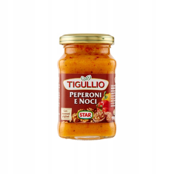 Tigullio Salsa Con Peperoni e Noci поєднує неповторний смак перцю на грилі з ніжністю горіхів.
