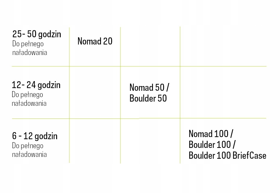 - настінний зарядний пристрій Goal Zero 120 Вт (додатково): 4,5 години