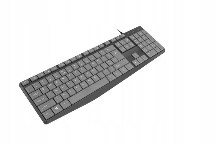 Конструкція клавіатури оснащена низькопрофільними клавішами ергономічної форми, що зменшує втому рук під час тривалої роботи та зменшує кількість зроблених помилок. Комфорт використання підвищують прогумовані ніжки, які запобігають ковзанню клавіатури по столу, а регульовані складні ніжки дозволяють регулювати кут нахилу клавіатури відповідно до потреб користувача. Завдяки технології Plug&Play просто під’єднайте кабель до вільного порту USB на комп’ютері, щоб негайно почати користуватися клавіатурою.