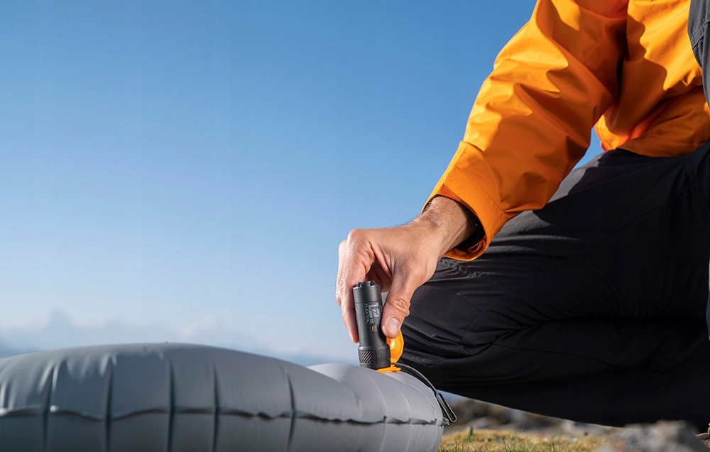 Портативний насос Flextail Zero Pump є необхідним інструментом для кожного ентузіаста пригод на природі. Розроблений для забезпечення максимального комфорту та ефективності - він важить лише близько 34 г і має розміри 26 x 75 мм. Завдяки цьому він поміститься в будь-який рюкзак! Пристрій може не тільки надувати, але і здувати повітря, а також оснащений змінним акумулятором RCR123A ємністю 650 мАг, що гарантує до 25 циклів надування на одному заряді.
