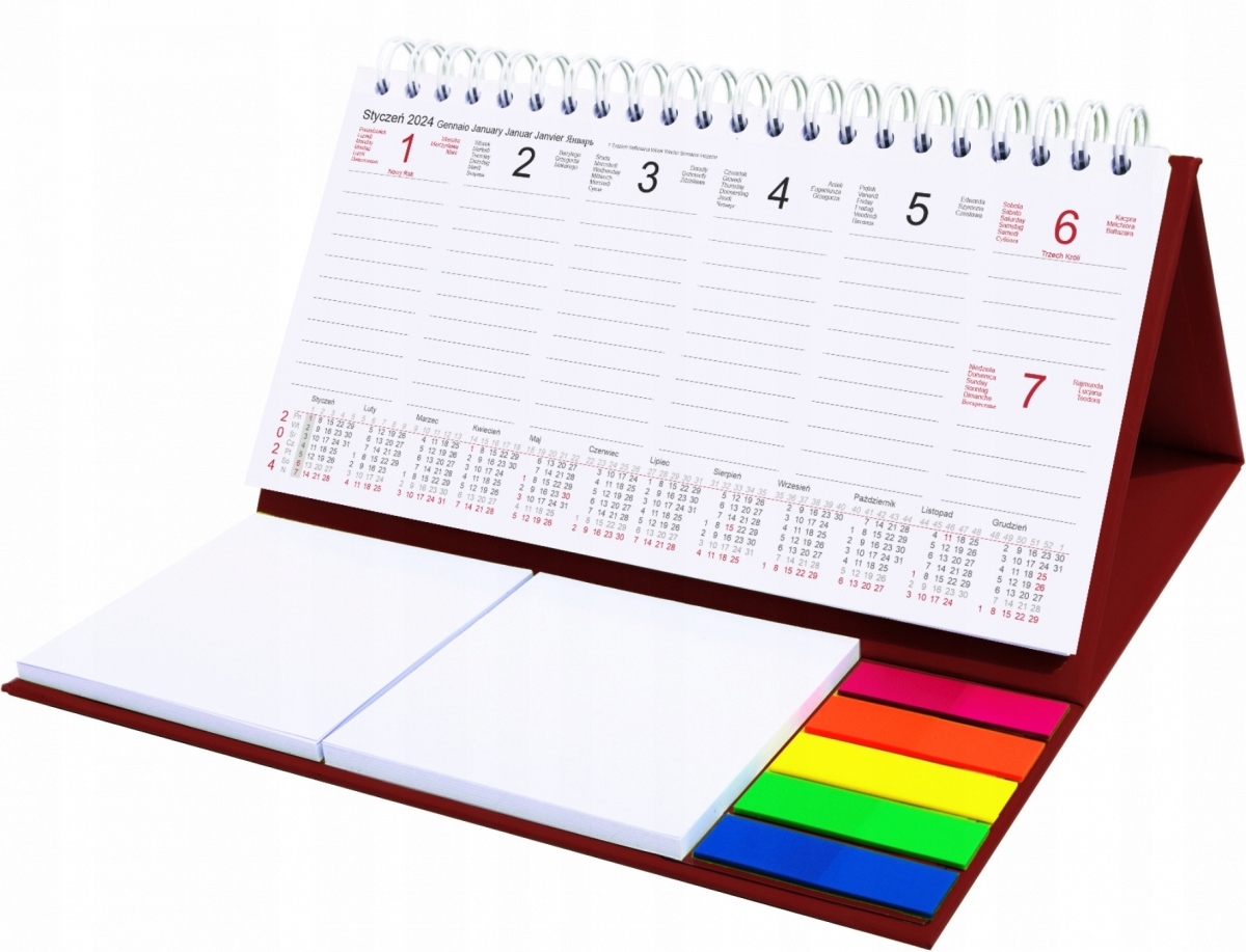 Тижневий настільний календар на 2024 рік із блокнотами та MIDI-фломастерами, бордовий
