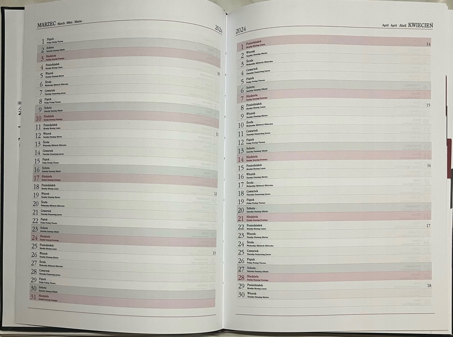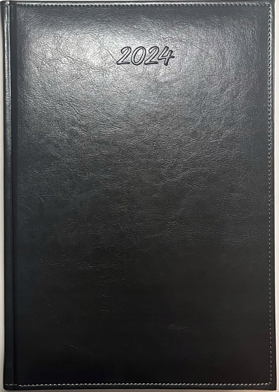 - тверда обкладинка, пом’якшена губкою, колір ГРАФІТ , колір МЕТАЛІК із тисненням року для 2024