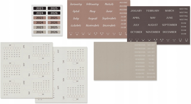 - Наклейки для персоналізації планів, включаючи річні наклейки для корінця та щомісячні наклейки для роздільників. .