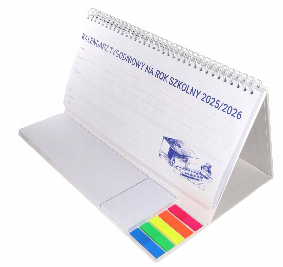 Престижний настільний календар на 2025/2026 навчальний рік із блокнотами та самоклеючими маркерами.