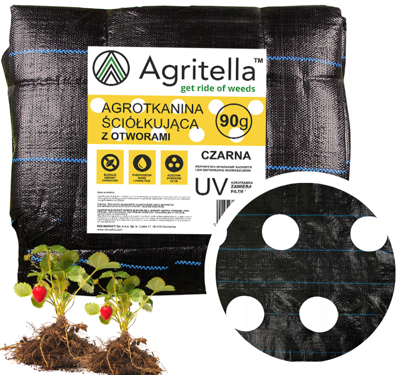 Агротекстиль Agritella з готовими отворами - ідеальне рішення для розсадників декоративних рослин, полуничних або овочевих плантацій. Це дозволяє заощадити час, витрачений на підготовку відповідних зрізів для молодих насаджень.