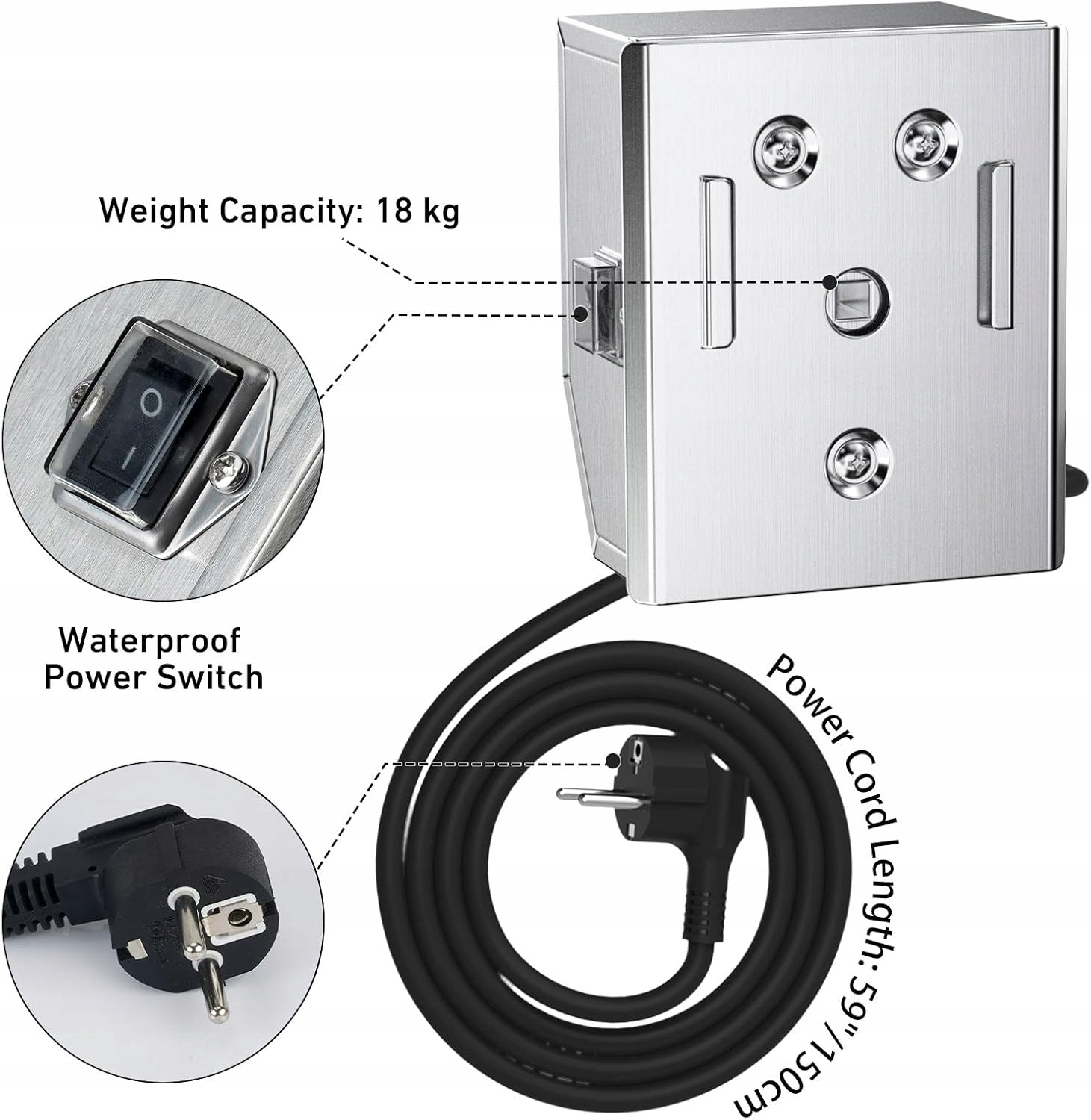 - Корпус двигуна: нержавіюча сталь, зовнішні розміри: прибл. (висота) 13 х (ширина) 11 x (головна) 7,4 див.