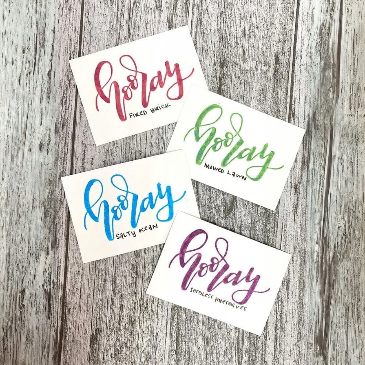 - Набір містить 4 кольори Distress Mini Ink: Fired Brick, Mowed Lawn, Seedless Preserves, Salty Ocean.