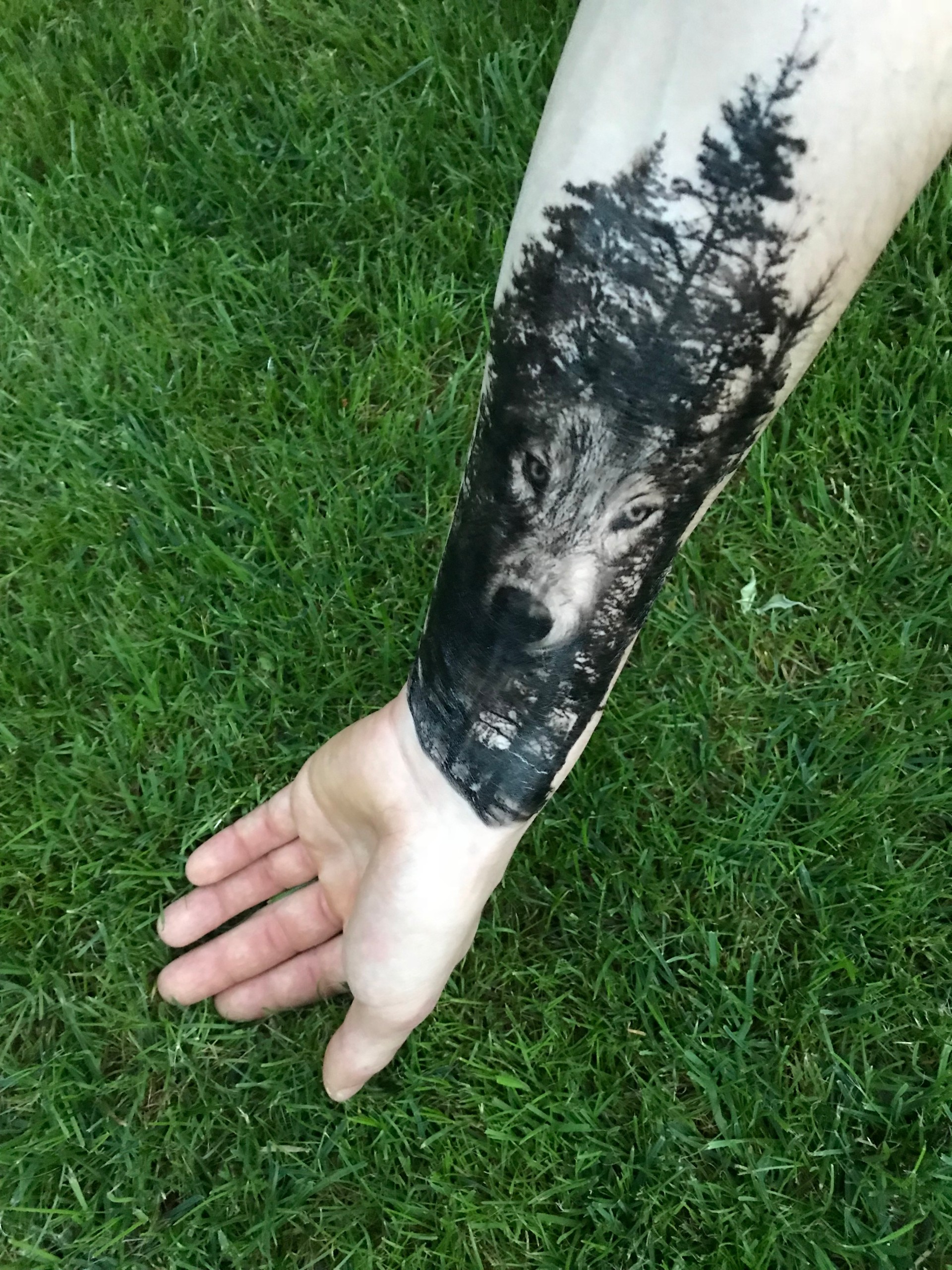 Тимчасове татуювання рука нога ліс вовк перед плечем