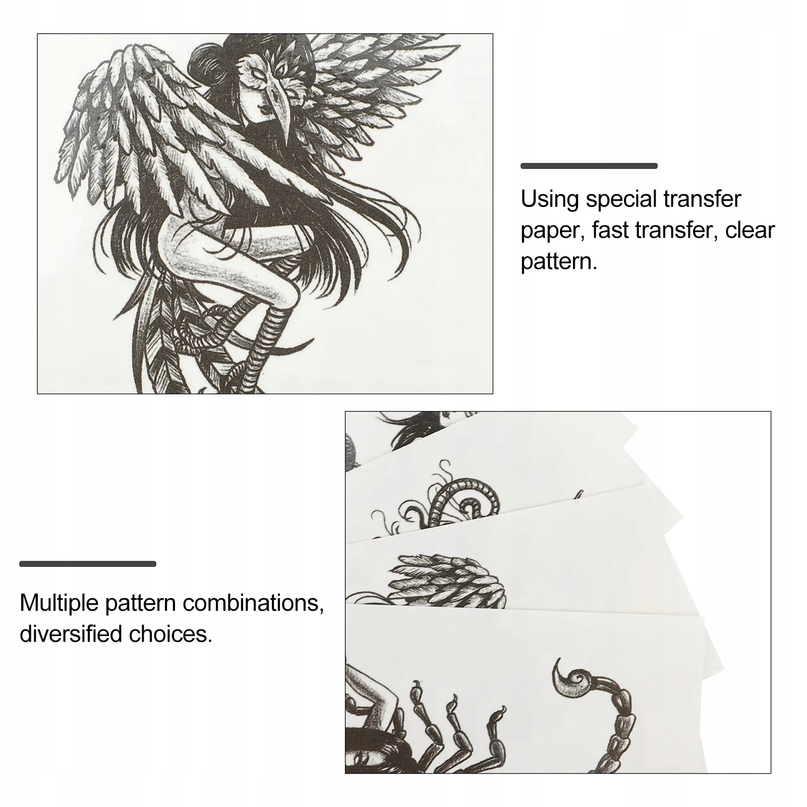 Завдяки цій тимчасовій наклейці ви можете заощадити цінний час завдяки швидкому та легкому тимчасовому татуюванні та уникати тривалого процесу сушіння або справжнього догляду за татуюваннями. Водонепроникна наклейка на тіло -чудова ідея та чудова вечірка для всіх. Завдяки цій вишуканій татуюваннях ви можете мати незабутню пам’ять.