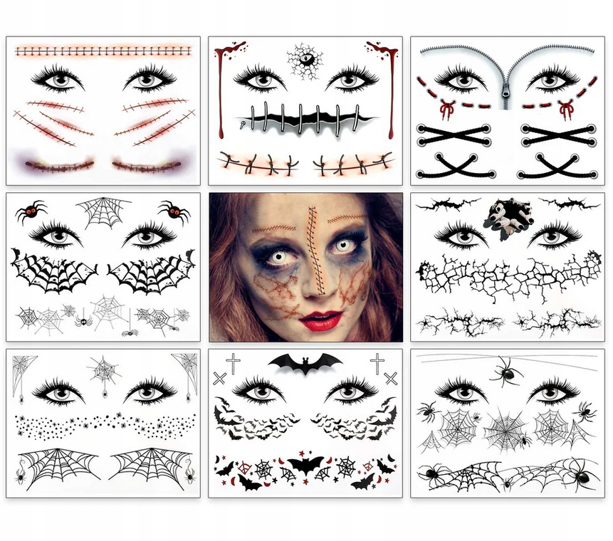 Тимчасові татуювання Хеллоуїна 9 Листів Жахливих Візерунків