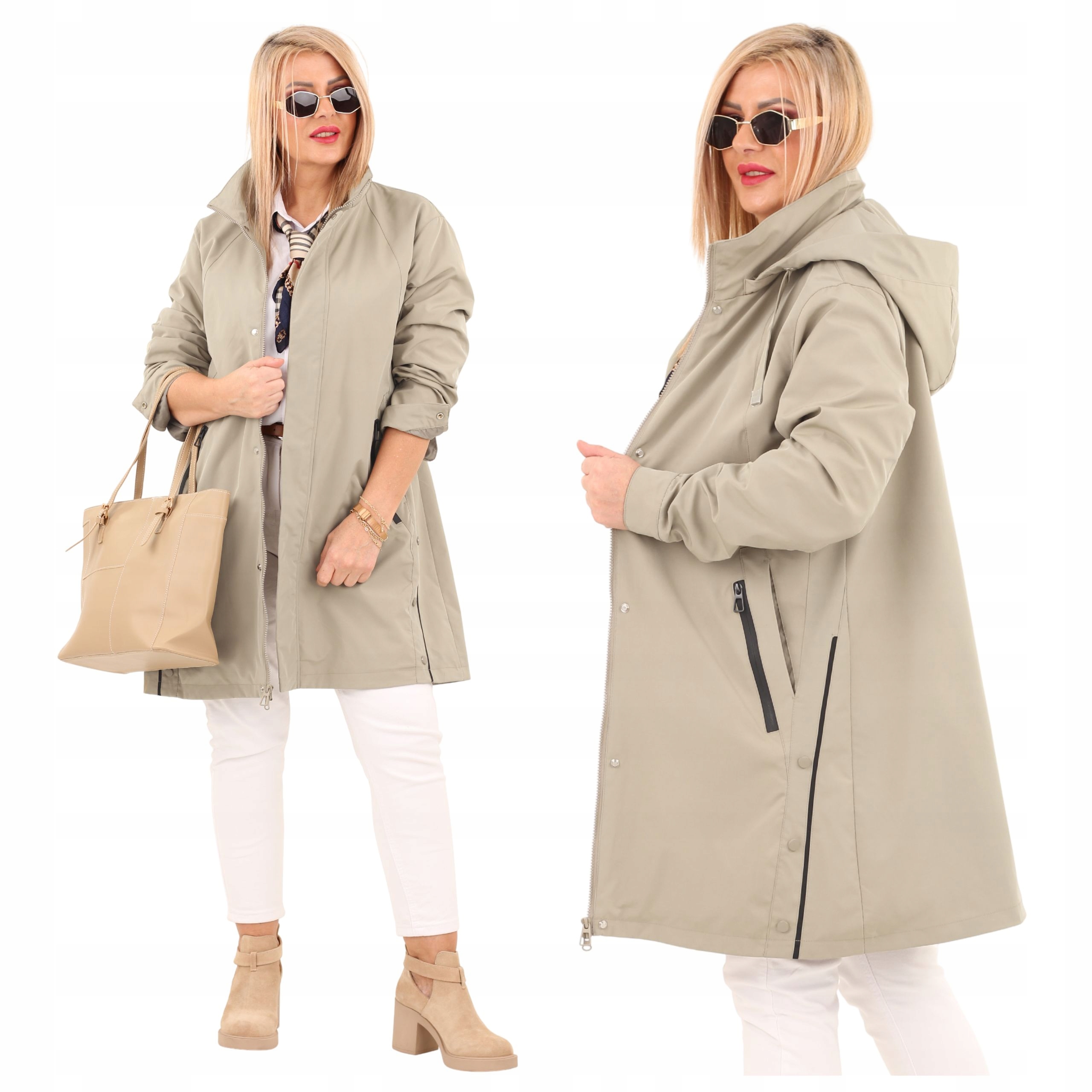Ми вимірюємо продукти плоскою, зовні, застебнуто (замикається). Розміри, наведені в таблиці, можуть відрізнятися від фактичних розмірів продукту +/- 2 см. Модель на малюнку заввишки 164 см і носить розмір 44.